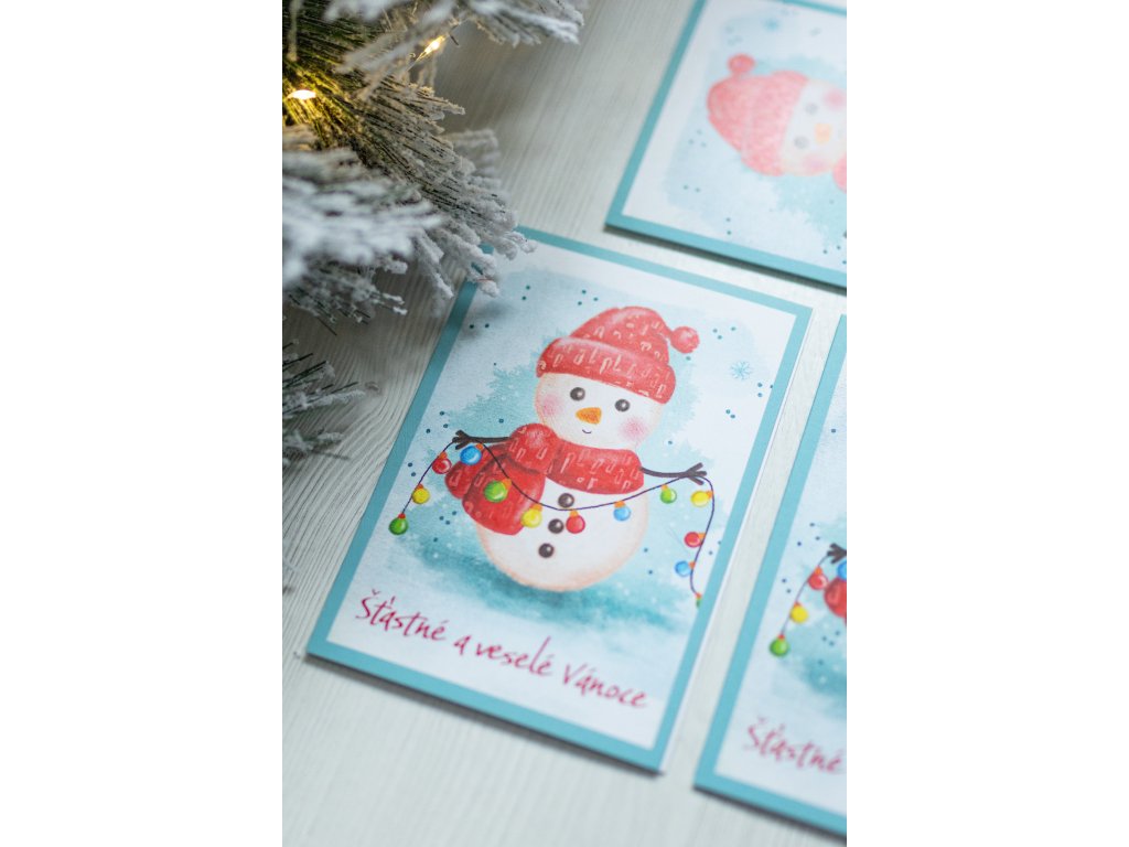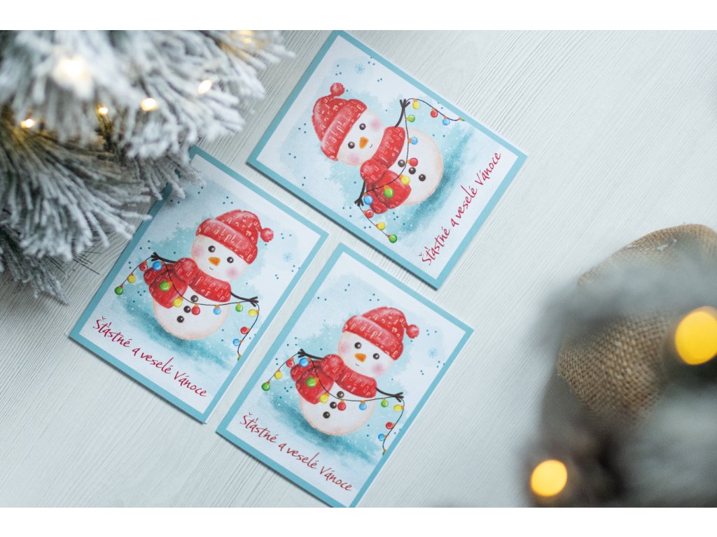 Vánoční blahopřání „Sněhulák – Šťastné a veselé Vánoce“ vnese do svátečních dnů radost a hravou zimní náladu. Na přední straně přání se usmívá originální autorská ilustrace sněhuláka, která rozzáří úsměv každému obdarovanému.