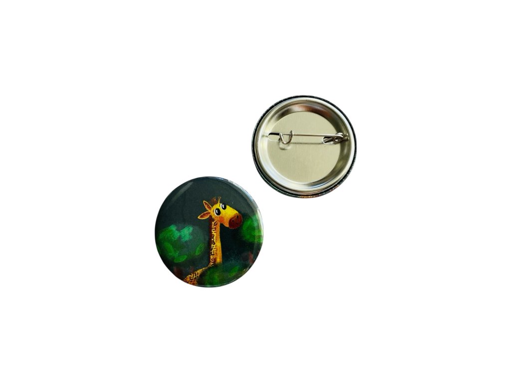 → originální placka odznak s autorskou ilustrací žirafy v jungli v noci