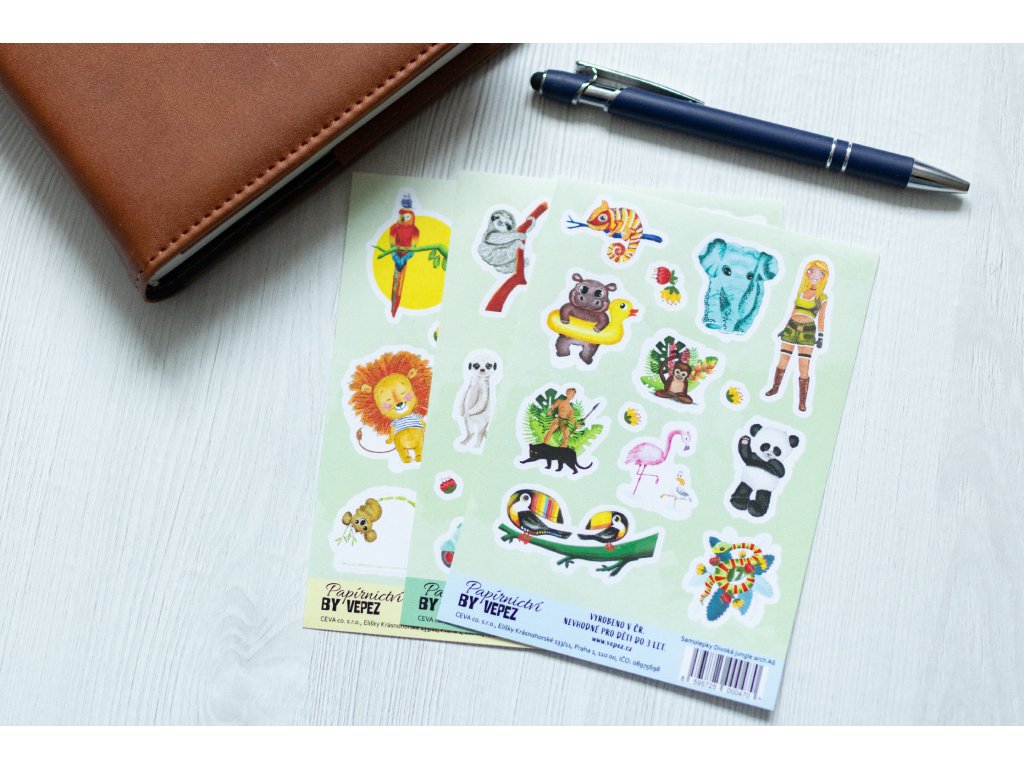 Pokud hledáš samolepky plné divoké energie džungle, aršík „Výprava do jungle“ je ideální volbou.