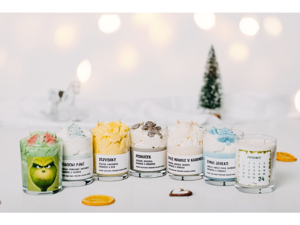 Bacha! Je zelený... Je lakomý.. Je nevrlý a nenávidí Vánoce a vše co k nim patří! Ale nebojte, ten náš Vám neukradne Vánoce, jen trochu pozvedne náladu.. Šlehanou svíčku Grinche si můžete vybrat ve dvou vůních a to Zimní jablko nebo Vánoční punč.