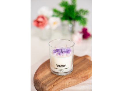 Záplava jemných květinových tónů Vás čeká s naší sójovou svíčkou LOUKA FIALEK "Fialka, kosatec, růže & pižmo". Tato svíčka je jako romantická procházka po kvetoucí zahradě, kde se mísí vonné tóny květin s hřejivým aroma pižma, vytvářející nezapomenutelnou atmosféru klidu a pohody.