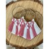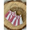 MACRAMÉ VISACÍ NÁUŠNICE BÍLO-RŮŽOVÉ, ZAPÍNÁNÍ KRUHY Z CHIRURGICKÉ OCELI