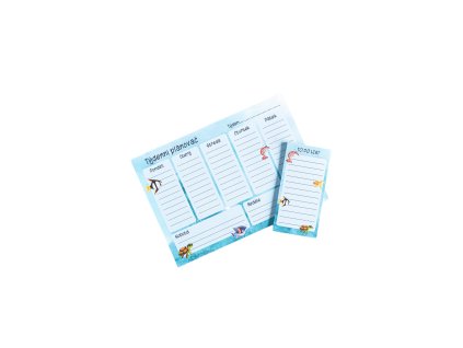 → velikost týdenního plánovače je A4, 52listů, trhací blok, velikost TO-DO listu je 16x8cm, 50listů, trhací blok