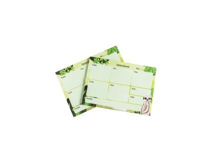 Velikost týdenního plánovače je A4, 80g BO, trhací blok, 52listů, potisk je z přední strany, ze zadní strany je bez potisku.