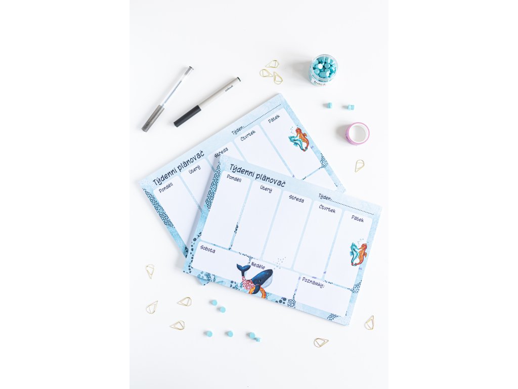 SET TÝDENNÍ PLÁNOVAČ A TO DO LIST VELRYBA A MOŘSKÝ KONÍK