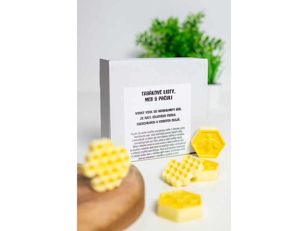 Přírodní sójový vosk do aromalampy Tabákové listy, med & pačuli